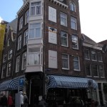 In het pand is café De Blauwe Druif gevestigd. Boven de ingang staat: '1733 [een druiventros] 1910'.Eerder stond op deze plek een huis met café (met boven de deur het opschrift 'De Blauwe Druif'). Dit gesloopte pand is te zien op bovenstaande foto (ontvangen van een lid van de familie Louman); het toont de situatie van ca. 1909. Voor de deur staan een onbekende dienstbode, Johannes Petrus Louman, zijn echtgenote Johanna Catrina Maria Louman-Simonis (1880-1951) en de twee steenleggertjes, Johanna en Johannes. Hoog in de halsgevel is vaag een ornament te zien in de vorm van een druiventros met het jaartal 1733. Dit gevelornament is herplaatst in de zijgevel aan de Binnen Brouwerstraat (zie foto Beeldbank, anno 1910).