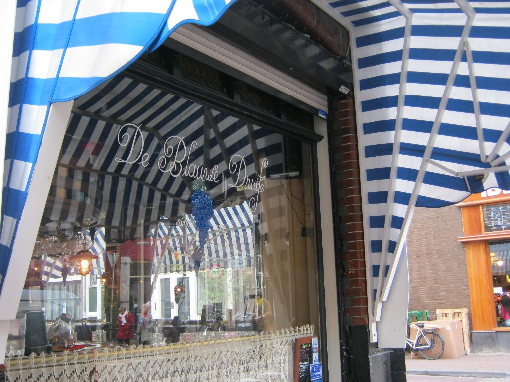 In de zeventiende en achttiende eeuw moesten zeelieden die wilden aanmonsteren voor een zeereis naar de Oost of de West, naar een café waar een druiventros uithing. Voor reizen van de Verenigde Oost-Indische Compagnie (VOC) was dit café De Druif. Voor reizen van de West-Indische Compagnie (WIC) toog men naar café De Blauwe Druif (ter onderscheiding van De Druif). Café De Blauwe Druif zat sinds 1733 in de Haarlemmerstraat; dit was immers vlakbij het hoofdkantoor van de WIC, het West-Indisch Huis op Herenmarkt 99 (de WIC functioneerde van 1621 tot 1792).