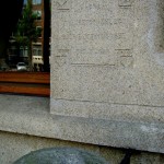De tekst is ingegraveerd in de gevelwand van lichtgekleurd graniet, links naast de voordeur. Aanvankelijk was de tekst slecht leesbaar maar de steen is inmiddels gerestaureerd en de letters zijn met goud ingekleurd.