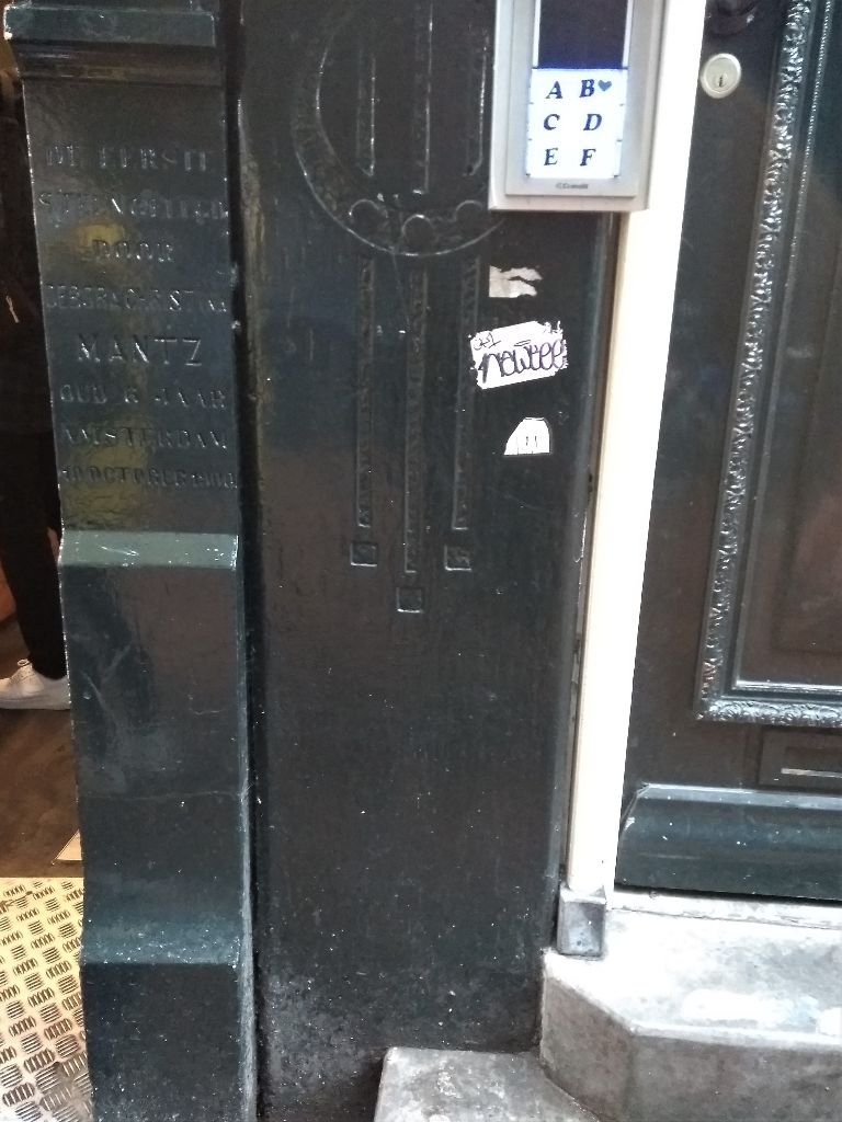 Haar broer Johann Heinrich Mantz (1877) legde op 23 november 1894 de eerste steen van het pand Amstelstraat 37.