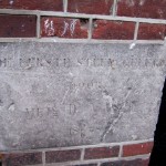 Door een verticale scheur tot halverwege de steen is de achternaam niet goed leesbaar.