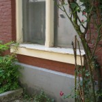 De tekst is ingegraveerd in de gevelwand onder het middelste raam van de begane grond. De muur is lichtgrijs geschilderd. Een en ander maakt de tekst slecht leesbaar.