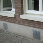 Naast de steen van Betje Agtsteribbe uit 1865 (links), zit de gedenksteen ‘Fleur Veenstra, mei 2010′ (rechts). Zie ook Zwanenburgwal 272 (2010).